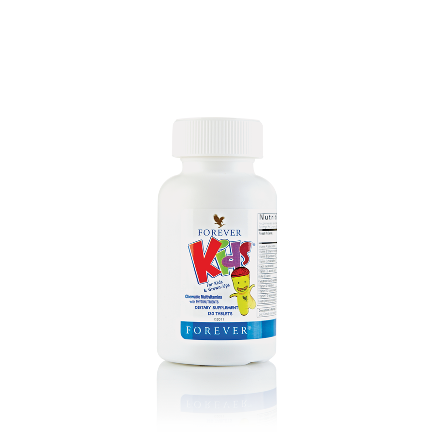 Forever Kids multivitamin étrend-kiegészítő rágótabletta édesítőszerrel.